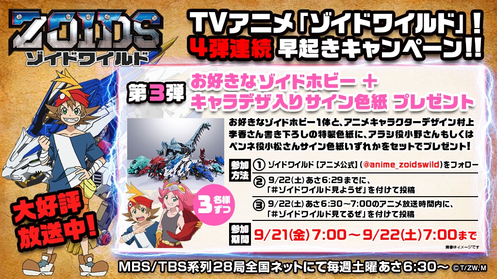 ③9/8(土)あさ6:30~7:00のアニメ放送時間内に「#ゾイドワイルド見てるぜ」を付けて投稿