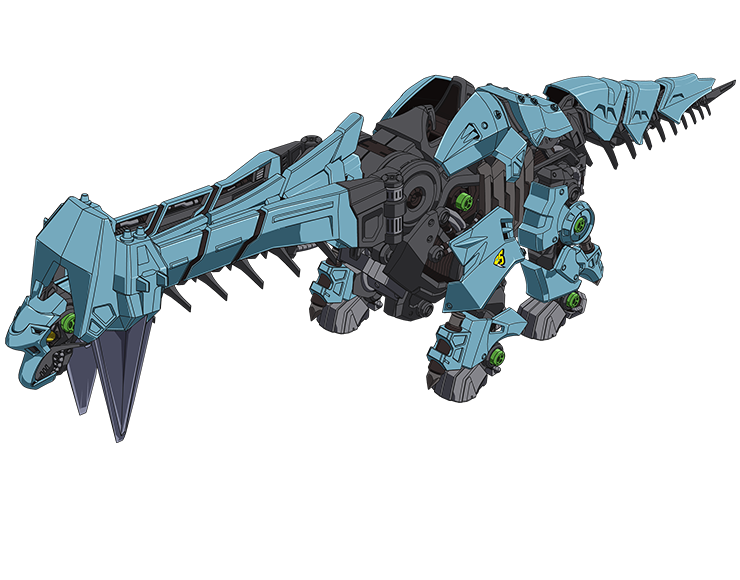 ブラキオサウルス種(しゅ) ハンマー状《じょう》の首《くび》を叩《たた》きつける攻撃《こうげき》や巨体《きょたい》を活《い》かして輸送物資《ゆそうぶっし》をおこなう巨大《きょだい》ゾイド。発掘作業《はっくつさぎょう》も得意《とくい》とする。本能解放《ほんのうかいほう》すると体《からだ》の左右《さゆう》にあるハンマーボーンが前方《ぜんぽう》に解放《かいほう》される。そのハンマーボーンは頭部《とうぶ》と一体化《いったいか》し、首全体《くびぜんたい》を巨大《きょだい》なハンマーに変《か》え、あらゆるものを叩《たた》きつぶす。その威力《いりょく》は地面《じめん》を粉砕《ふんさい》するほどである。 本能解放技名《ほんのうかいほうわざめい》は、「グランドハンマー」。
