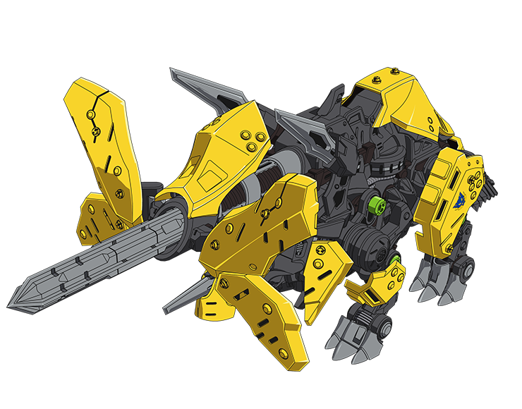 トリケラトプス種(しゅ) 3本(ぼん)の角(つの)を用(もち)いた体当(たいあ)たり攻撃(こうげき)を得意(とくい)とする大型(おおがた)ゾイド。フリルシールドで敵(てき)の攻撃(こうげき)を跳(は)ね返(かえ)す防御力(ぼうぎょりょく)も備(そな)えている。 本能(ほんのう)を解放(かいほう)すると、フリルシールドを開(ひら)きながら中央(ちゅうおう)の巨大(きょだい)な角(つの)「インパクトホーン」を勢(いきお)いよく突出(つきだ)させ、敵(てき)ゾイドを突(つ)く。 本能(ほんのう)解放(かいほう)技(わざ)名(めい)は、「フォースインパクト」。